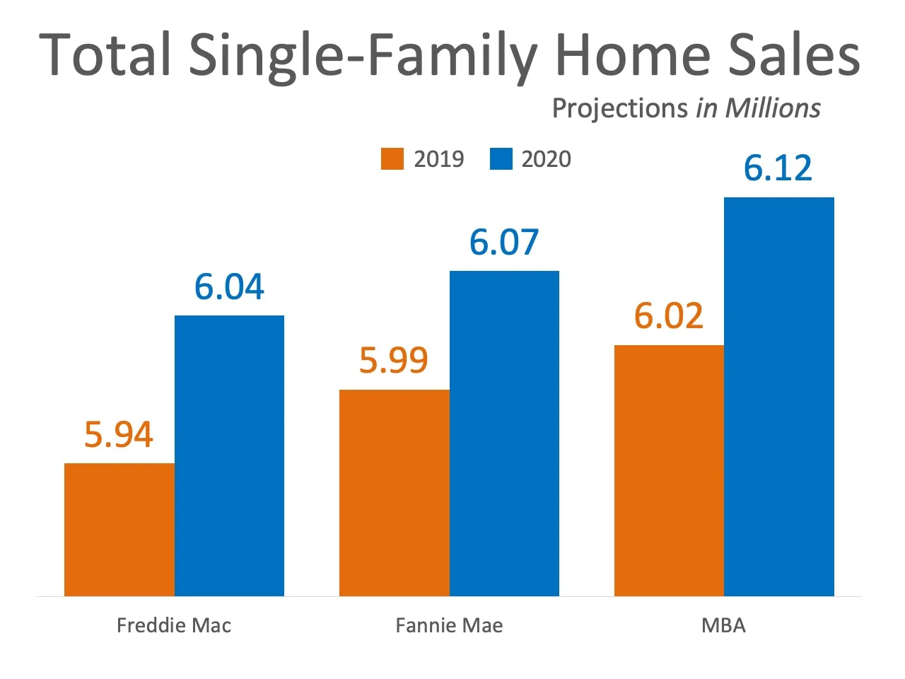 Freddie MacFannie Maeand the Mortgage Bankers Association are all projecting home sales will increase nicely in 2020.