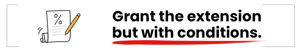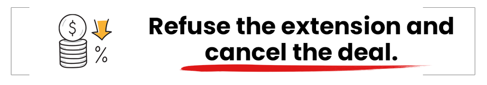 In this approach, instead of outright accepting and extending the closing day date, you are adding conditions like daily fees, increased earnest money, or cost coverage to protect your finances. This keeps the deal alive without putting you at a disadvantage.