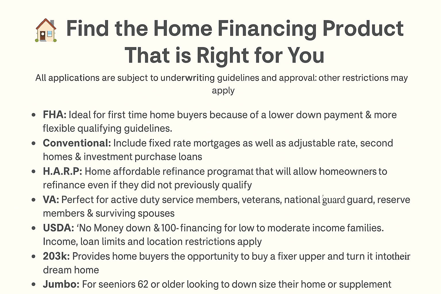 Not all homebuyers are the same—and your mortgage shouldn’t be either. Whether you're buying your first condo in Fort Lauderdale or refinancing your dream home in Weston, there's a financing program designed to fit your goals, budget, and lifestyle.